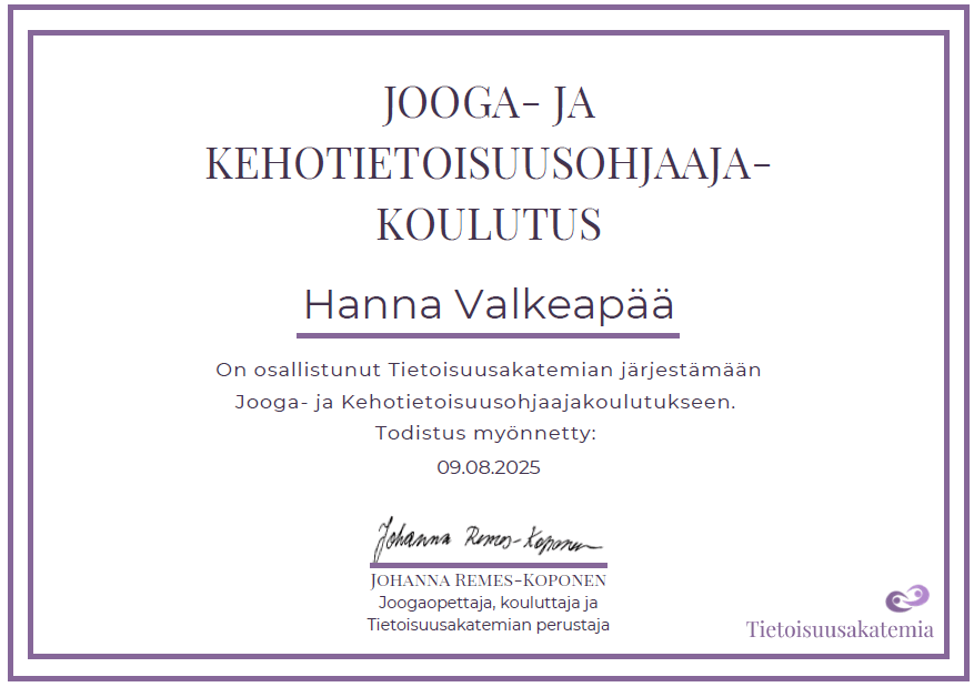 Kehorauha, houkuttelee tietoiseen läsnäoloon, liikkeessä tai paikallaan. Oman kehon ja sen toimintojen tunnistaminen tukee hyvinvointiasi ja voit ottaa sen huomioon kun toimit arjessa.